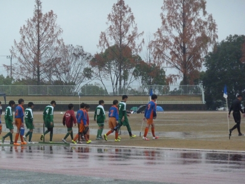 最後の試合は、ピッチの半分以上が水溜りで前へ運ぶ事が難しい状態でしたが、