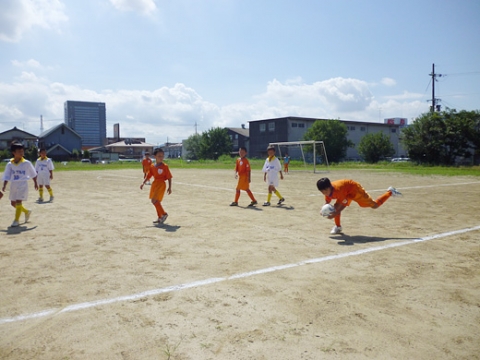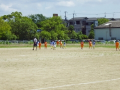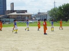 暑さに負けず、元気いっぱいにプレー出来ていました。ドリブルトッパあり、パスを使う選手もいて、前回の試合よりトレーニングの成果が出ていました。